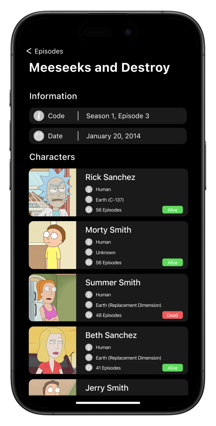 Screenshot 1Screenshot 2Screenshot 3Screenshot 4Screenshot 5Screenshot 62024rickandmortyuikitclean-architecturemvvm-c- ☆